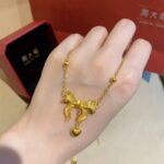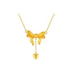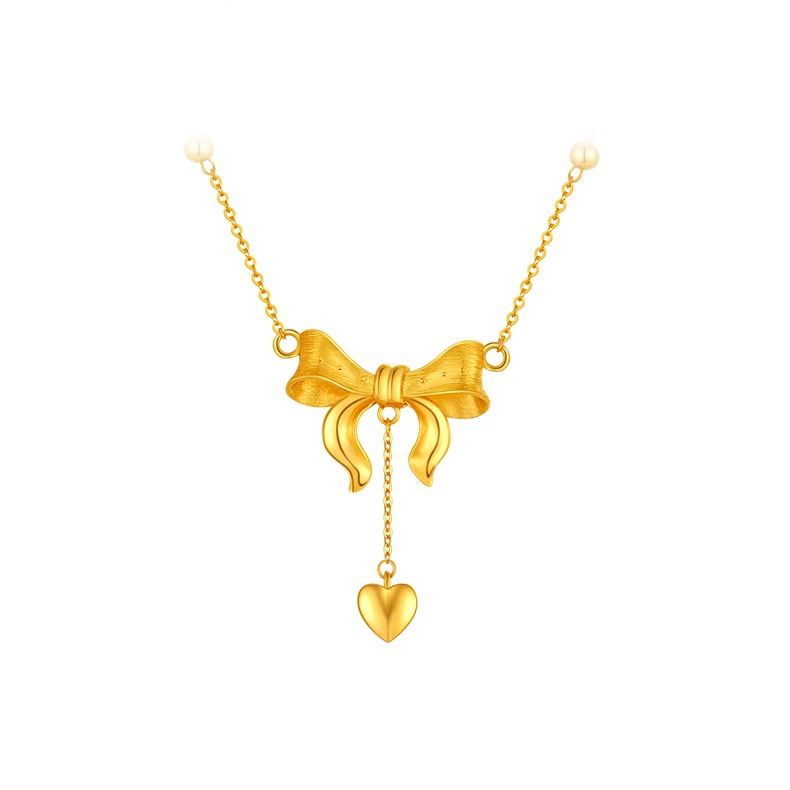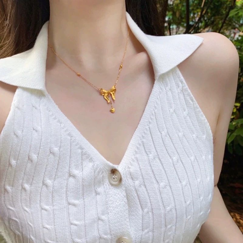 สร้อยคอเครื่องประดับแบบหญิงสาว สร้อยคอสร้อยระฆังรูปหัวใจและโบว์ สร้อยคอห่วงห้ามไหล่ สร้อยคอเลียนแบบทองคำไม่ตกสี
